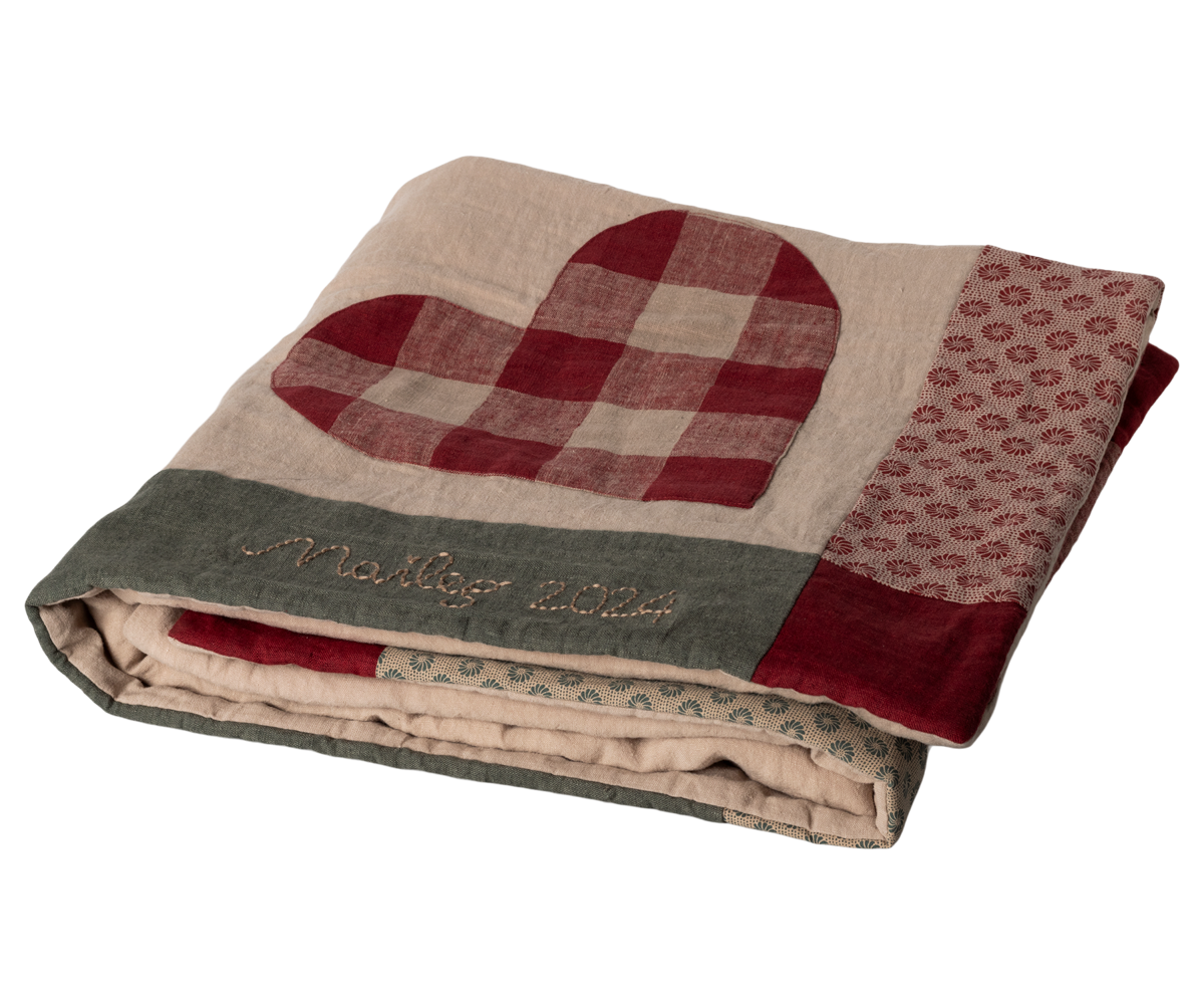 Create a warm and festive base for your holiday tree with this beautiful Christmas Tree Rug. Made from soft patchwork fabric in seasonal colours and prints, it features heart-shaped blocks and “Maileg 2024” delicately embroidered on the corner. Designed to match other Maileg Christmas accessories, it brings a sense of charm and cohesion to your holiday décor.