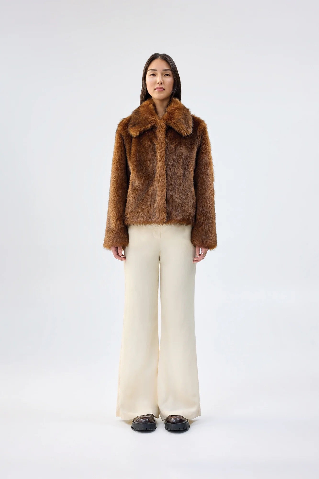 Minimalism meets confidence in the Courage Jacket. Longline sleeves and short-pile faux fur combine to create a streamlined silhouette that is as understated as it is versatile.