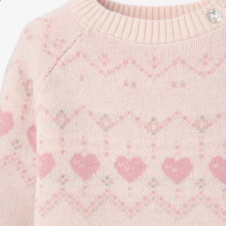 Heart Fairisle 3pc Pullover and Footie Pants and Hat Set Pink/Rose