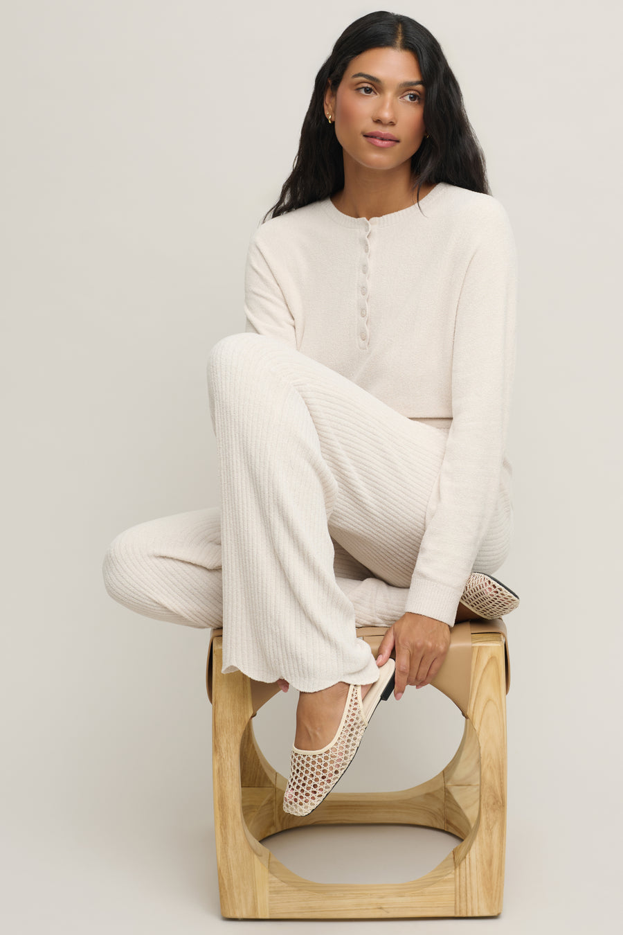 Soft structure meets breezy elegance in our CozyChic Ultra Lite® Scallop Dolman Henley. Designed in a relaxed dolman silhouette, this lightweight top features a scalloped henley neckline accented with delicate shell buttons—adding a touch of feminine charm to an effortlessly casual style. The piece lands at the high hip for easy layering and a flattering fit, with ribbed finishing at the neckline, and elevated rib detailing at the sleeve openings and hem for added shape and structure.