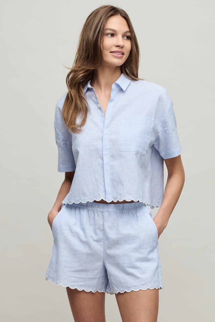 Linen Blend Stripe Short With Scallop Lakeside Stripe