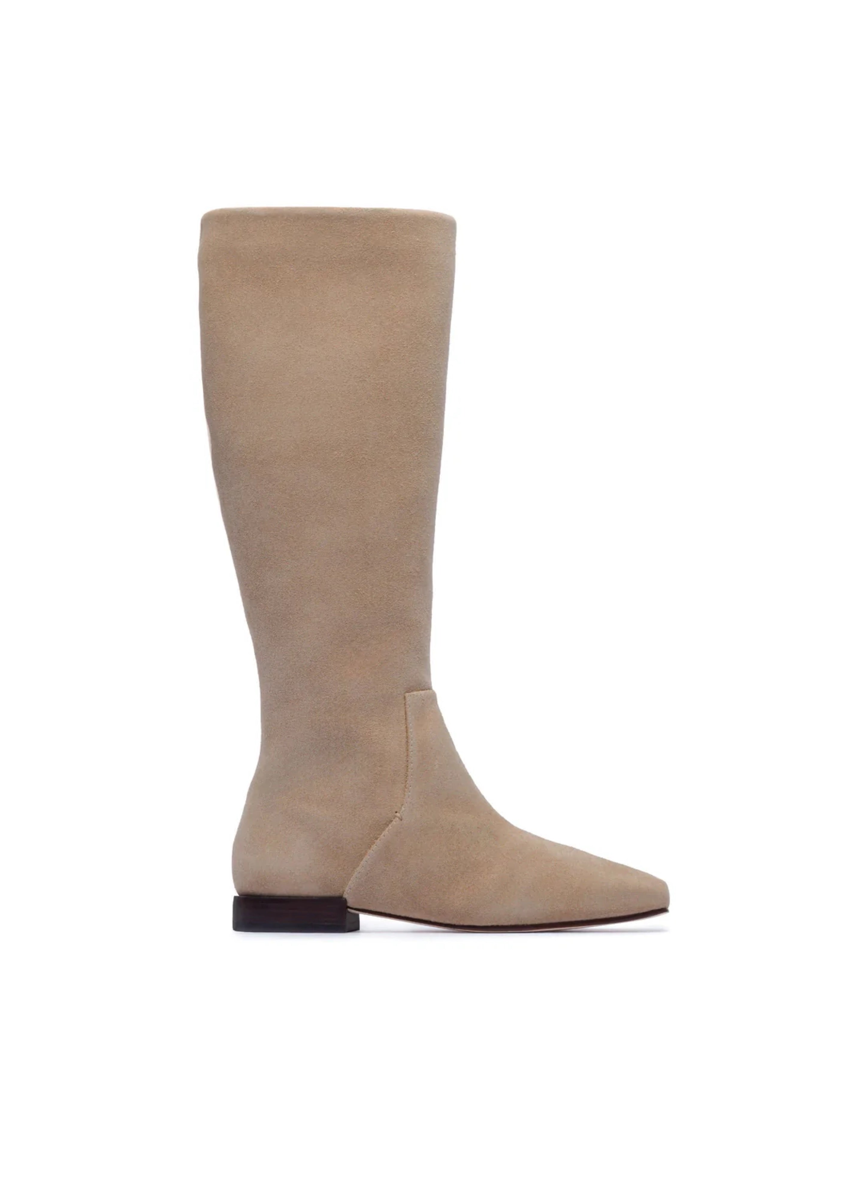 A statement with stability. This slim, tall-shaft boot features a contemporary square toe, perfect for year-round, all-around-town wear with its low heel and neutral tones.