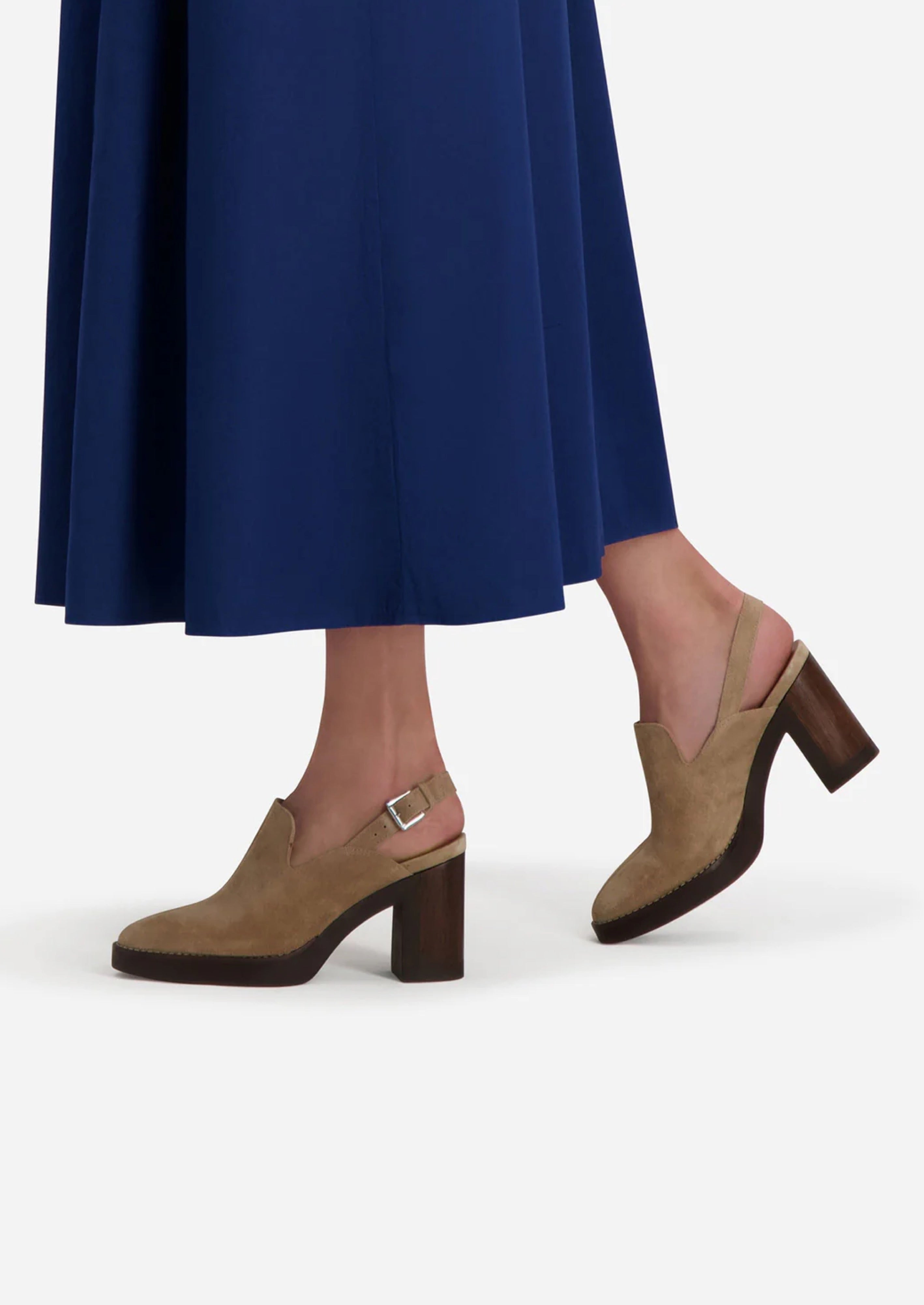 Elevating classic casual. This slingback loafer heel features a polished upper with a sharp, tailored silhouette and a sturdy block heel for all-day wear.