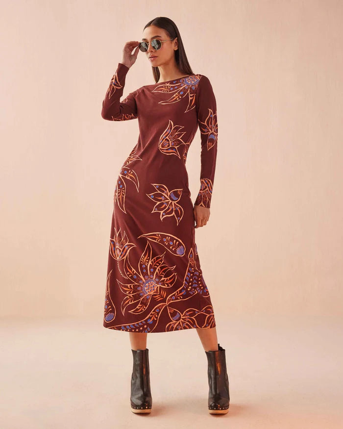 This luxurious long sleeve dress is the perfect canvas for our one-of-a-kind large-scale prints. Consciously crafted from soft Jersey fabric, it features a mid-length silhouette with a subtle A-line fit. Compliments, guaranteed.