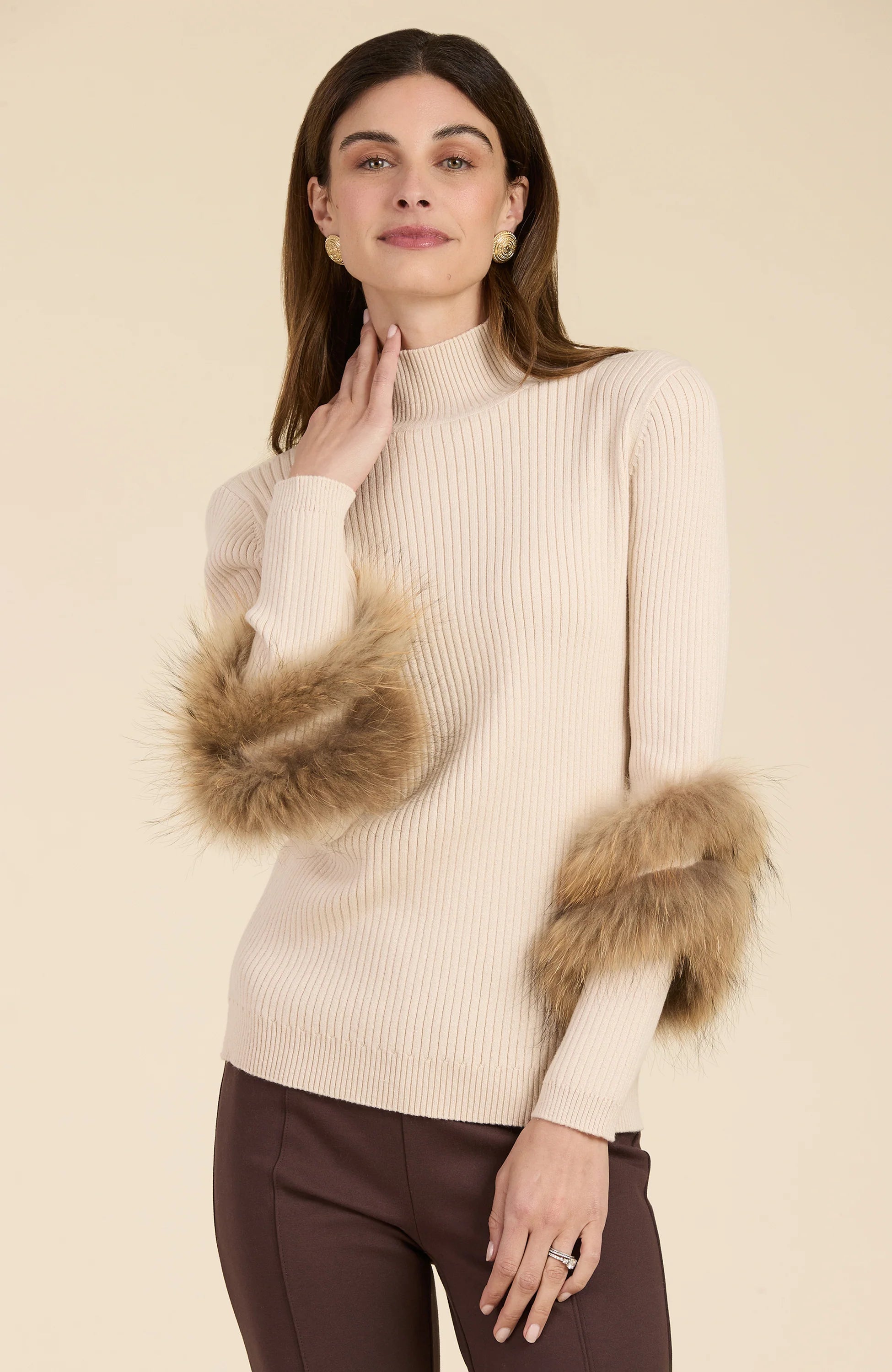 Cotton Cashmere Rib Mock Neck Fur Limestone