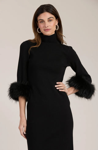 Cotton Cashmere Mock Neck Fur Sweater Black
