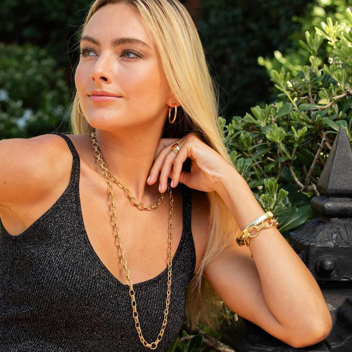 Designed for the modern woman, this statement piece is as timeless as its namesake icon, with abundantly sized links wrought in hammered gold and rendered in a braided motif reminiscent of Egypt's beautiful wheat fields. Radiating feminine power for reigning triumphant over every occasion and adventure