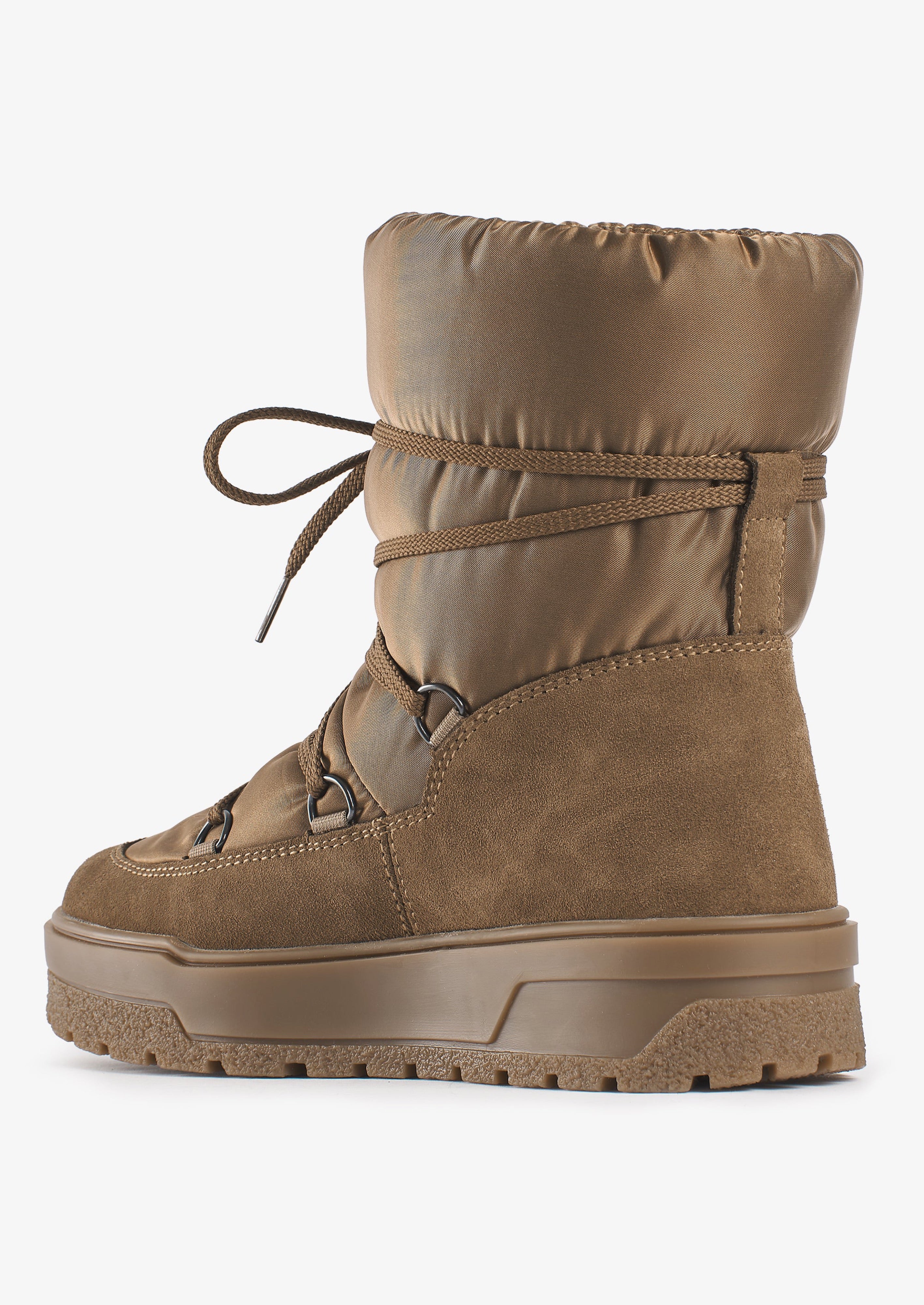 Introducing the ultimate winter boot for city walks: the Calixa. With its contrasting materials of hydro suede leather and quilted lustrous polyester, this lightweight boot delivers warmth and exceptional weather protection. Its high-traction Jasper sole ensures you stay steady on your feet throughout the season. Embrace winter with confidence and style in the Calixa.