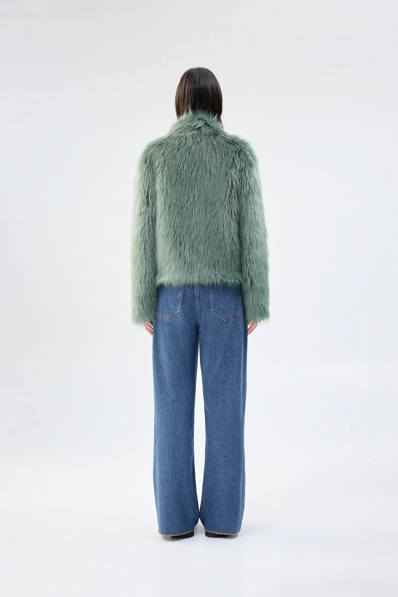 A celebration of texture and elegance, the Fur Delish Jacket blends a structured silhouette with distinctive fabric combinations. The straight stand collar and long sleeves evoke understated luxury, making this jacket a statement piece for contemporary layering.