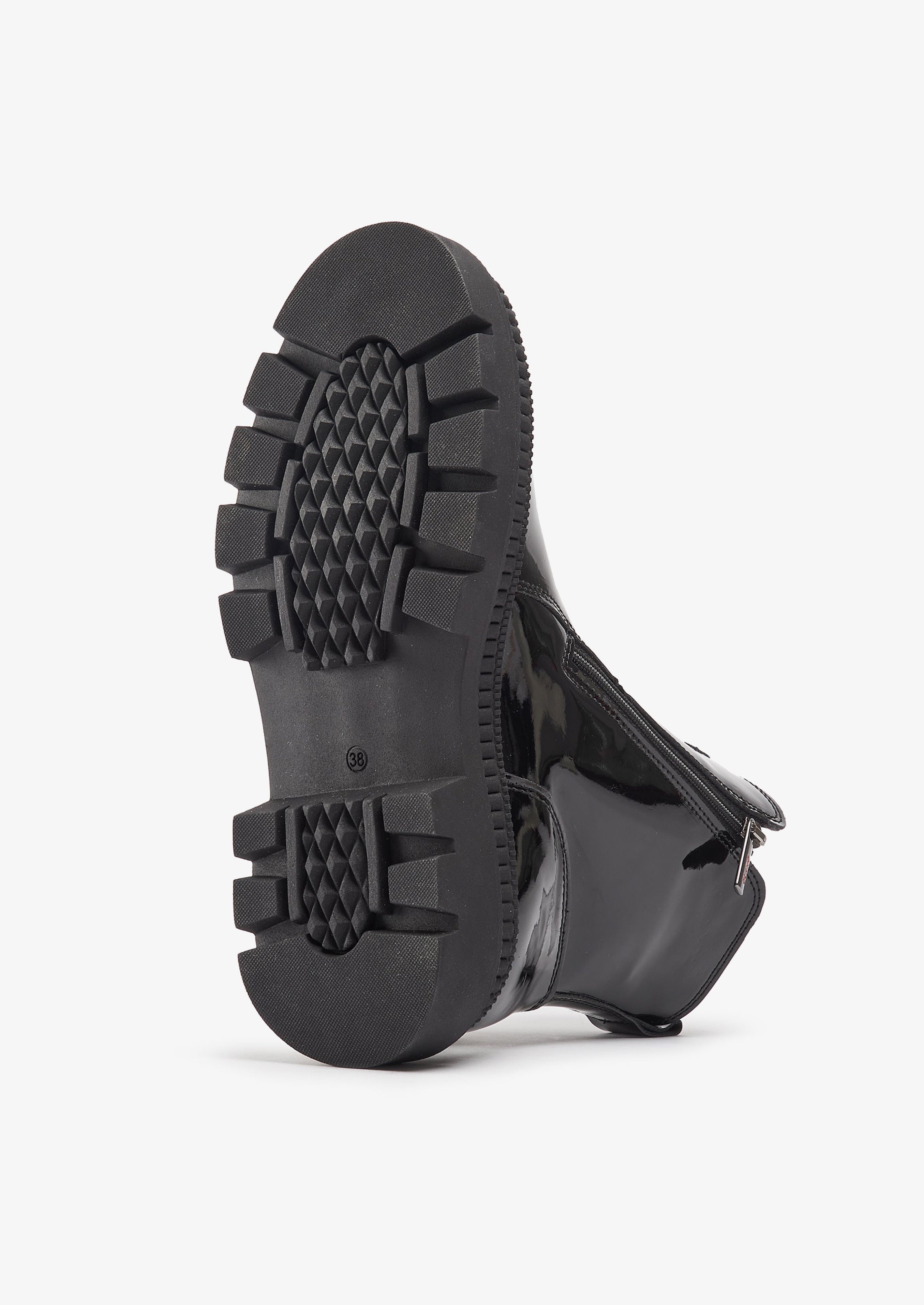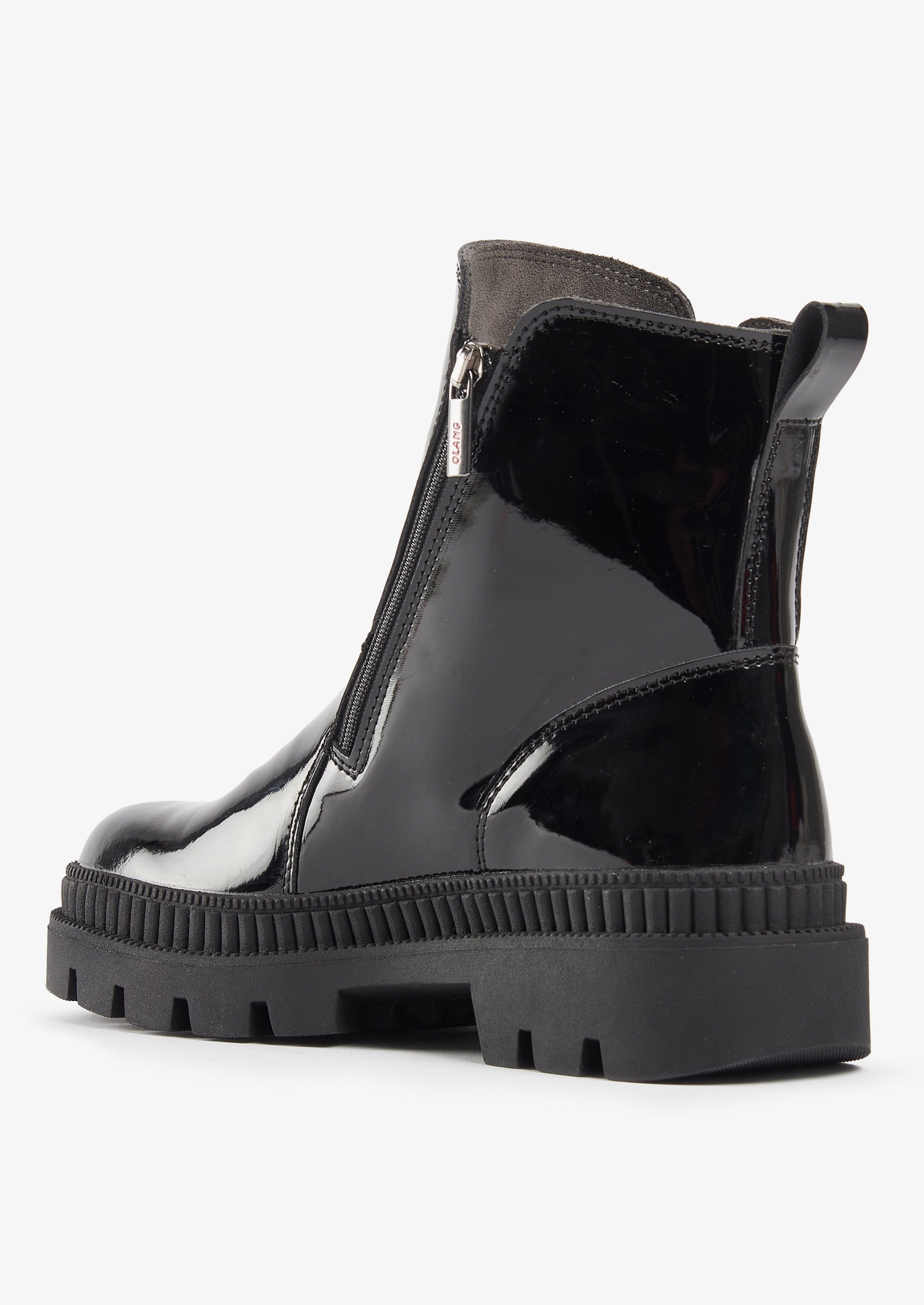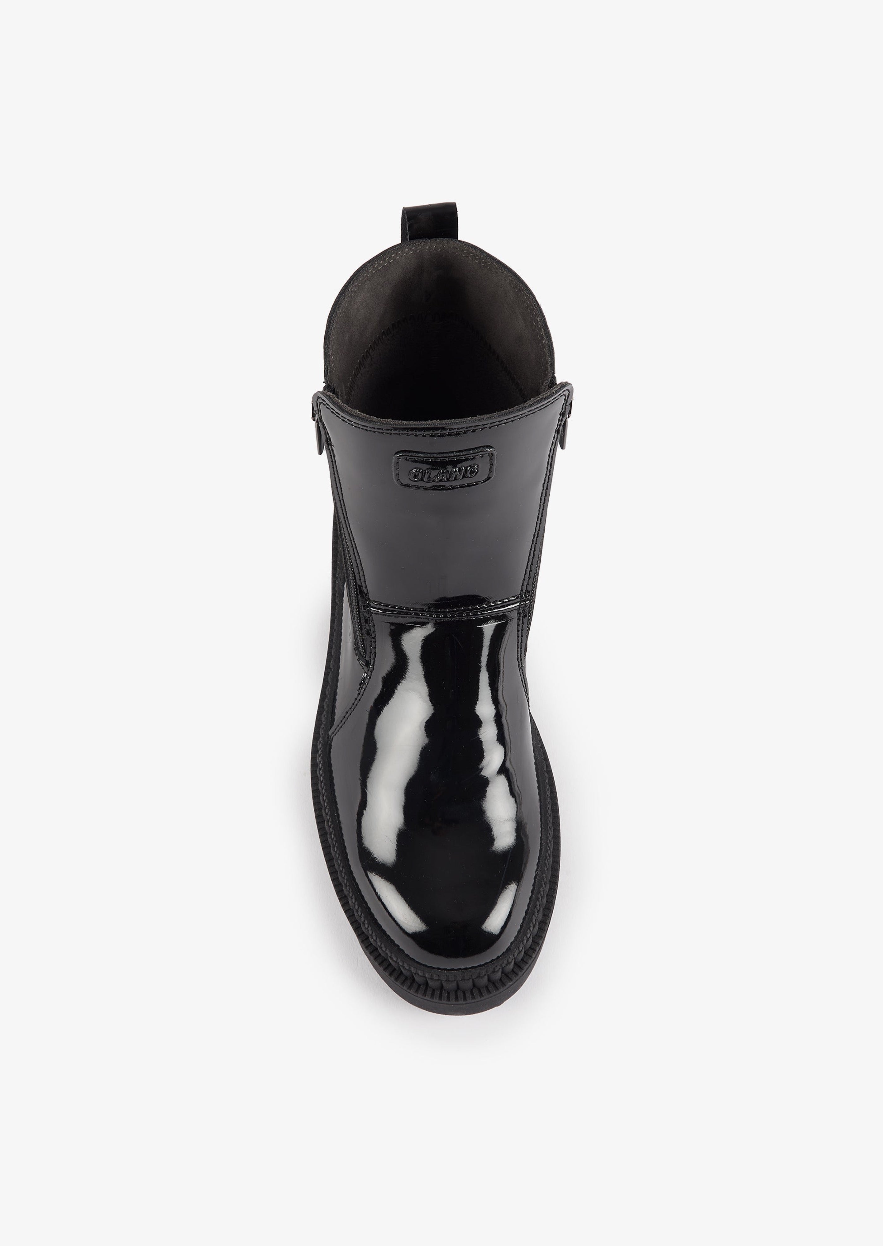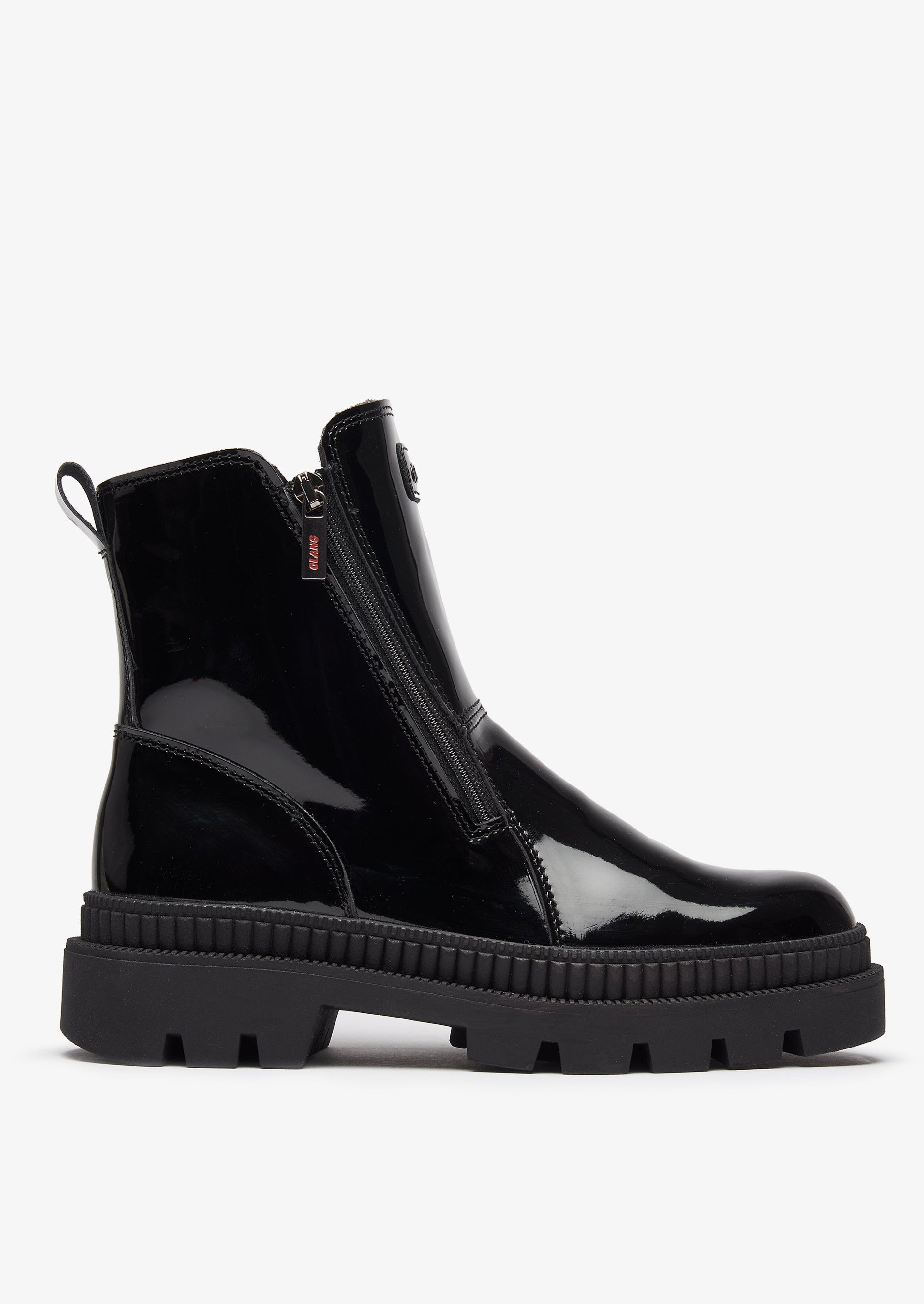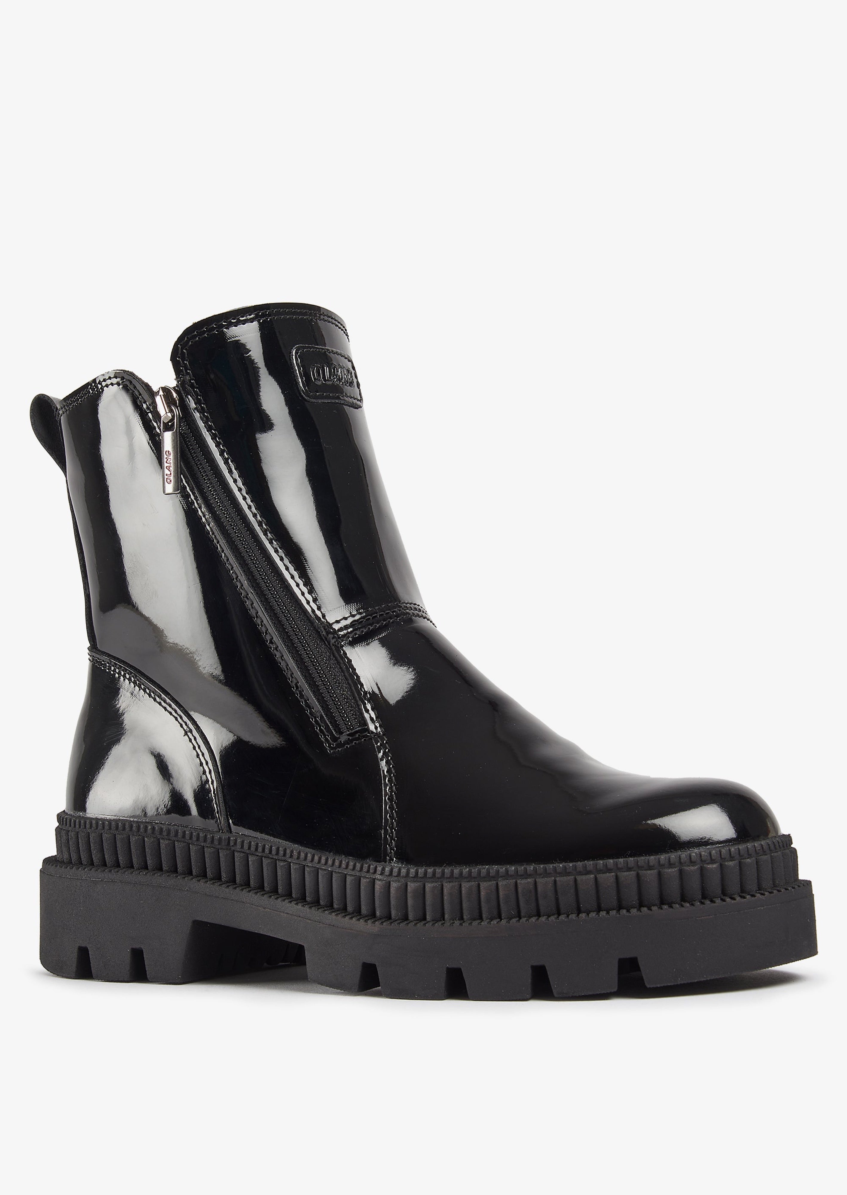 Show off unwavering confidence with the Palace boots, a versatile and stylish choice for both fall and winter. Designed to effortlessly complement any outfit, these vegan boots are perfect for the dynamic urban woman. Dual side zippers allow for a wide opening and easy on-and-off, while the glossy, patent leather-like finish adds a chic touch to your look.