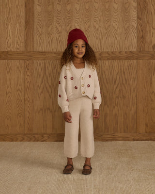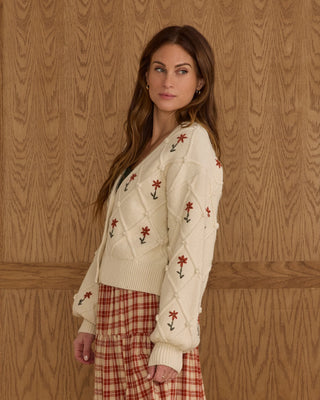Boxy Crop Cardigan Winter Daisy Embroidery