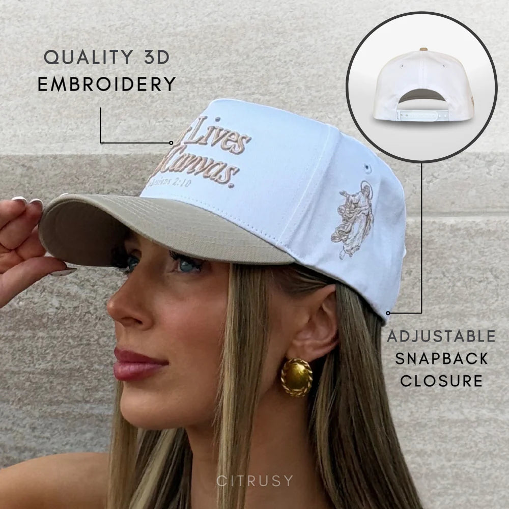 Our "Our Lives His Canvas" hats are perfect for everyday wear or any occasion. These aesthetic vintage trucker hats feature two-tone color palettes with quality embroidery.