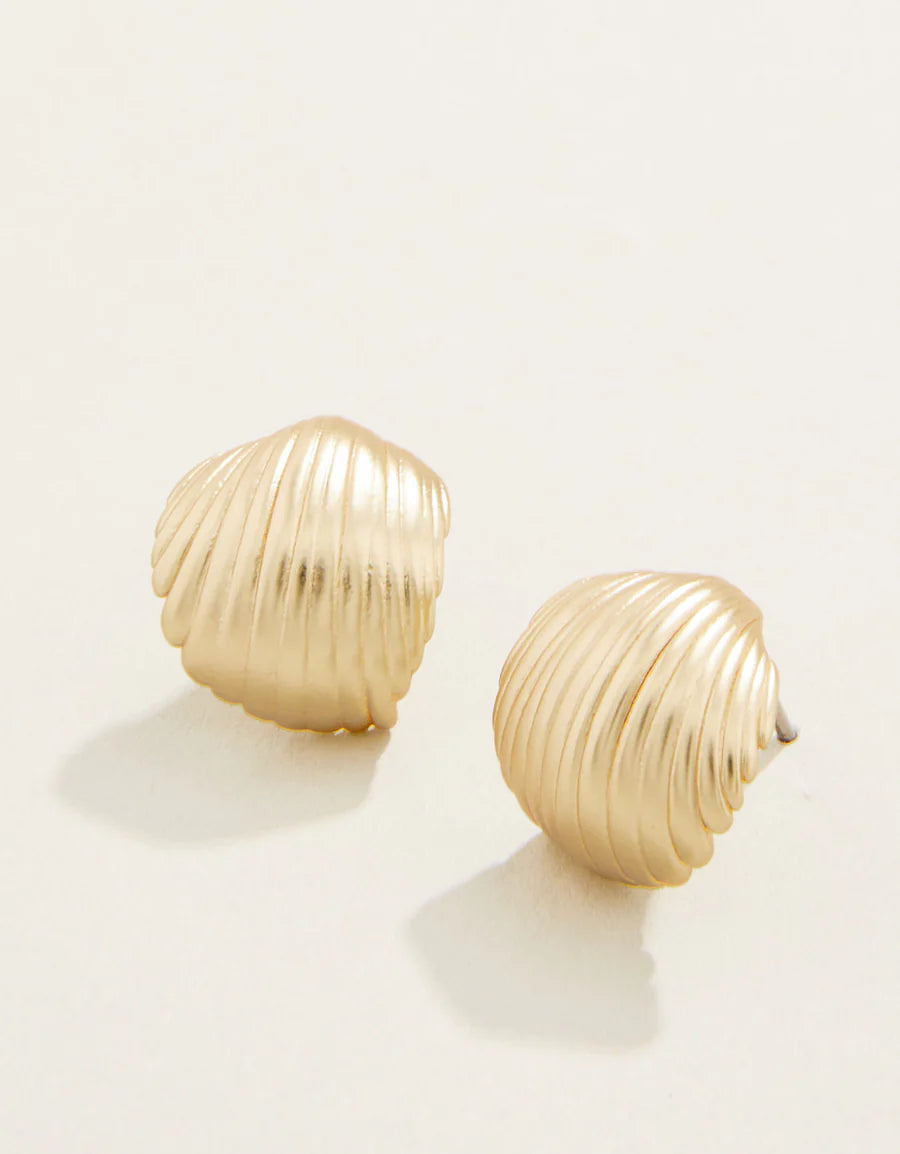 Simple, yet stunning. Our Shell Hoop Earrings provide a new twist to the classic hoop style. Designed to mimic an admired summer icon curved to fit your lob in our signature 18kt matte gold plating.