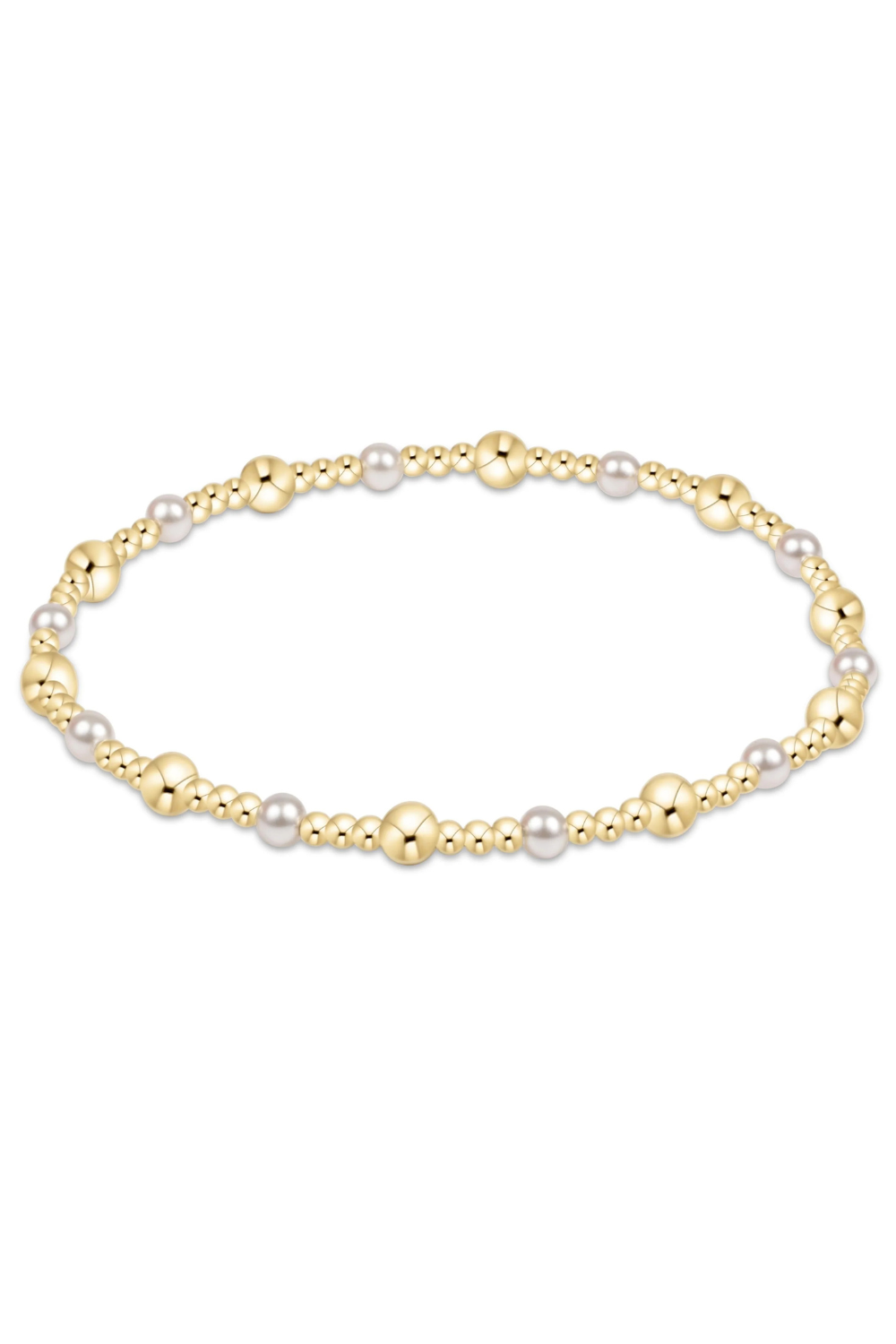 You will fall in love with this classic gold sincerity pattern 4mm bead bracelet with pearl!