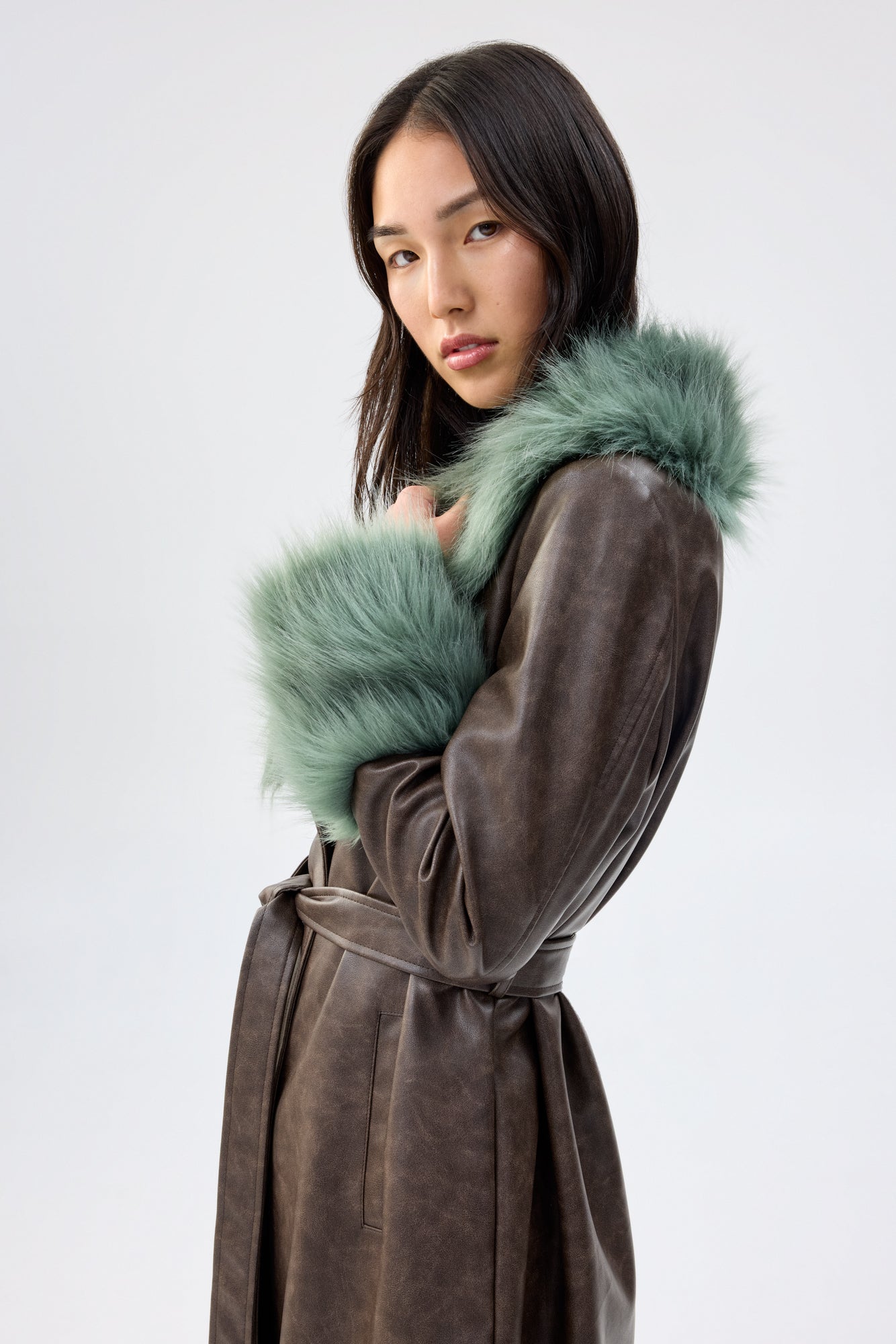 and lush faux fur contrasts define its silhouette, while recycled polyester lining