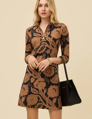 Nora Half Zip Dress With Vegan Leather Brown Sugar