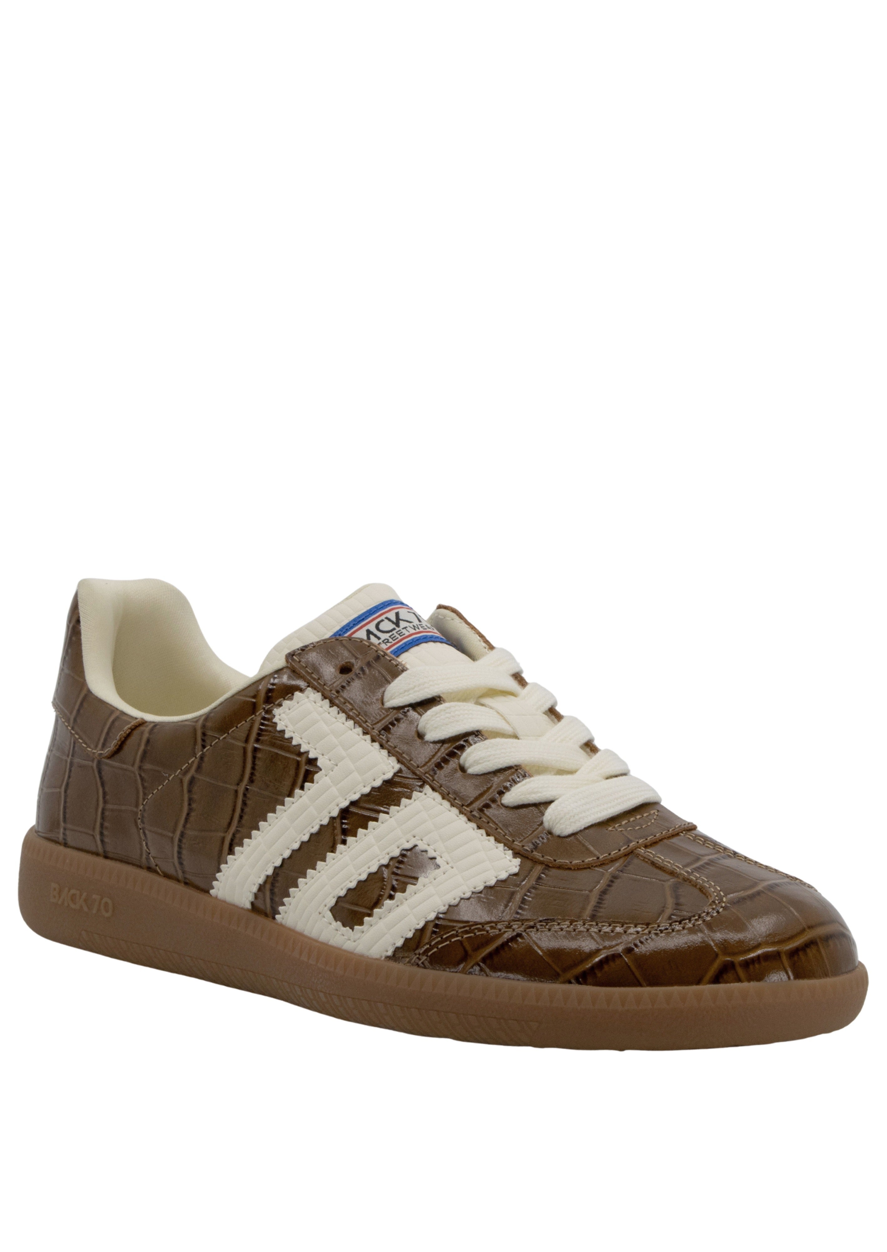 Cloud K brings bold energy with a luxe twist-crafted in genuine leather embossed with croc texture and dripping in rich jewel tones. If there were a diamond-clad bowling alley, we'd so be there. This elevated sneaker balances playful nostalgia with high-fashion edge. The vintage gum sole and iconic Back 70 mark ground it in boutique cool, while the croc finish steals the spotlight. Perfect for women looking for standout fashion sneakers that mix statement style with Italian craftsmanship.