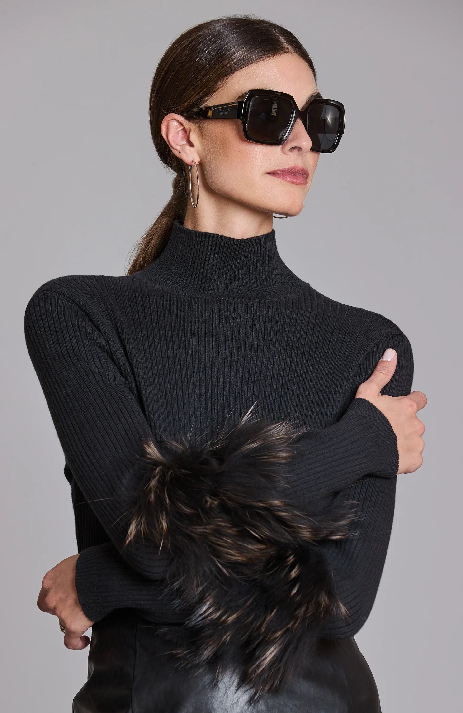 Take your turtleneck up a chic notch with a touch of faux fur. This special element takes a simple piece and makes it perfect for every type of occasion, day or night.