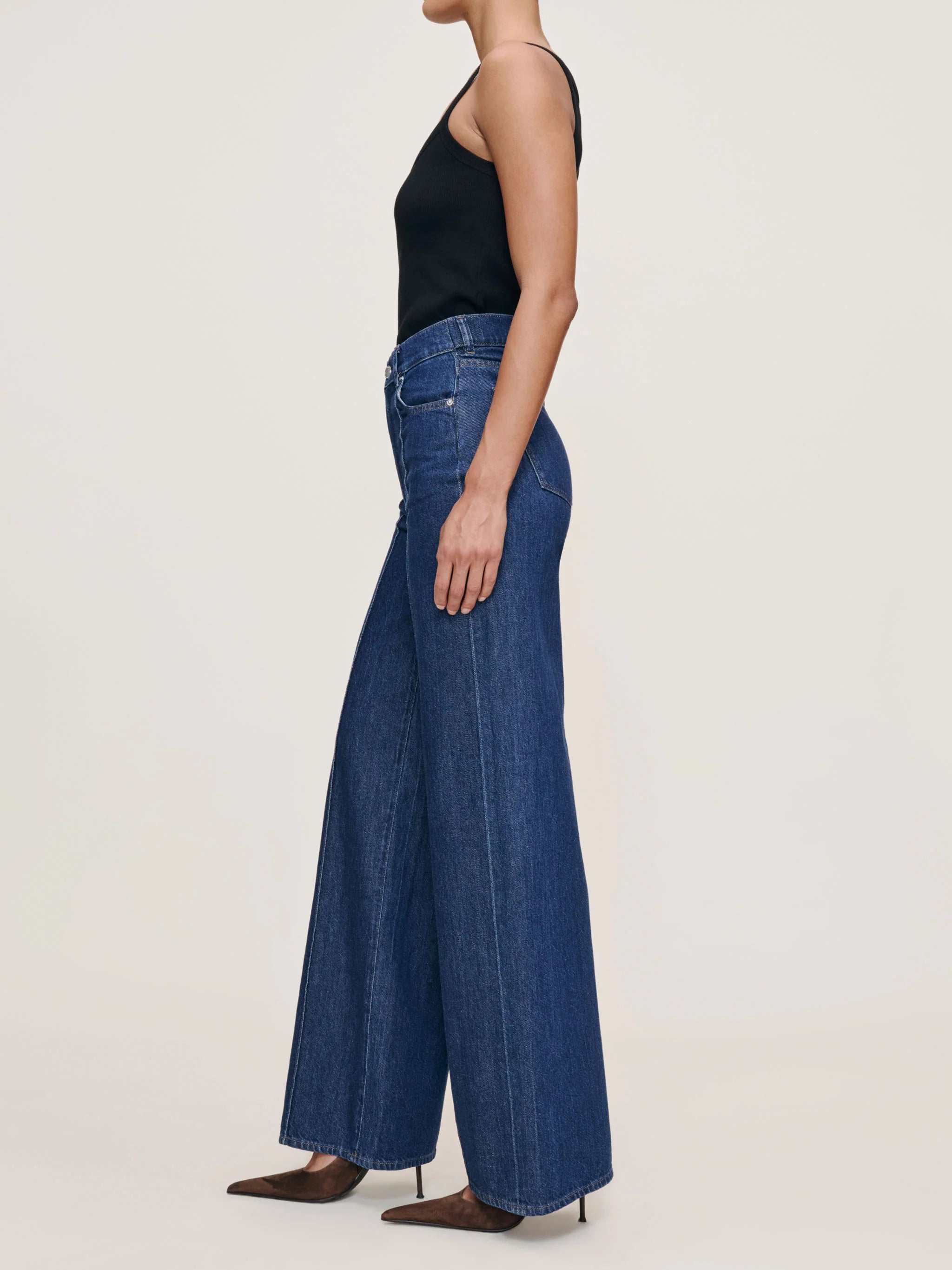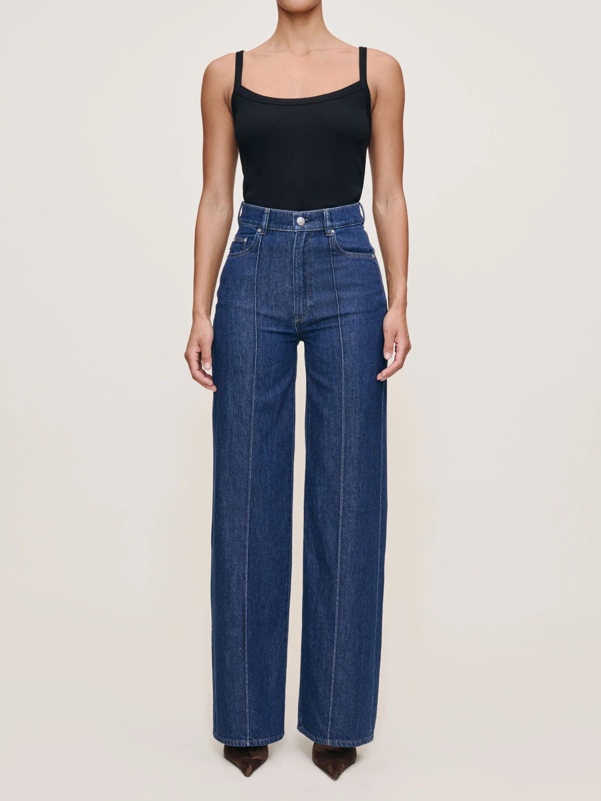 Hepburn is a high-rise style that is fitted through the waist and seat, tapering outward from the thigh for a wide leg with a 32" inseam.