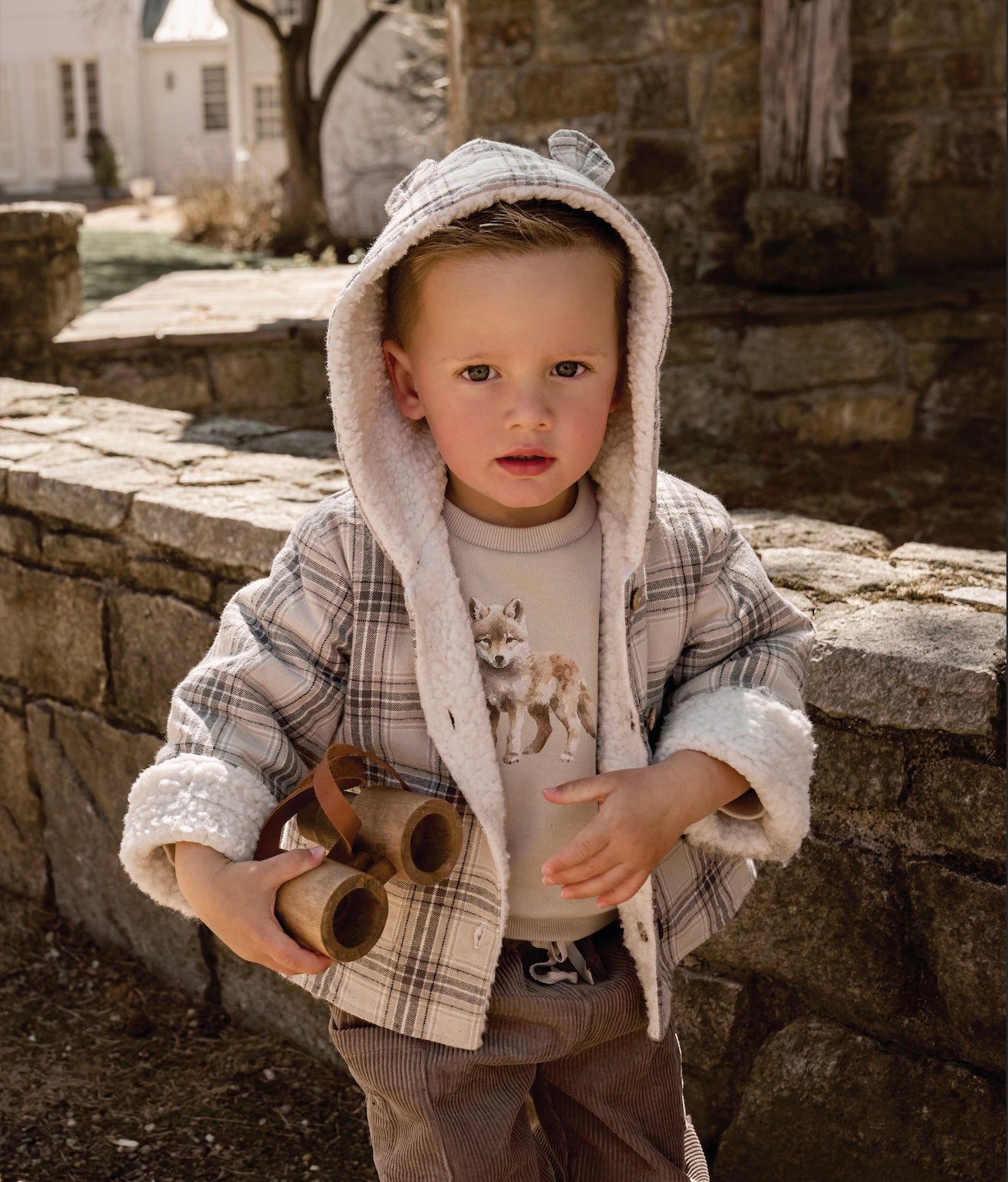 A versatile layer with heirloom appeal, this reversible coat features a classic neutral plaid on one side and plush sherpa on the other. Thoughtfully designed for warmth and comfort, it's the perfect outerwear piece for crisp morning strolls, weekend outings, and cozy seasonal adventures.