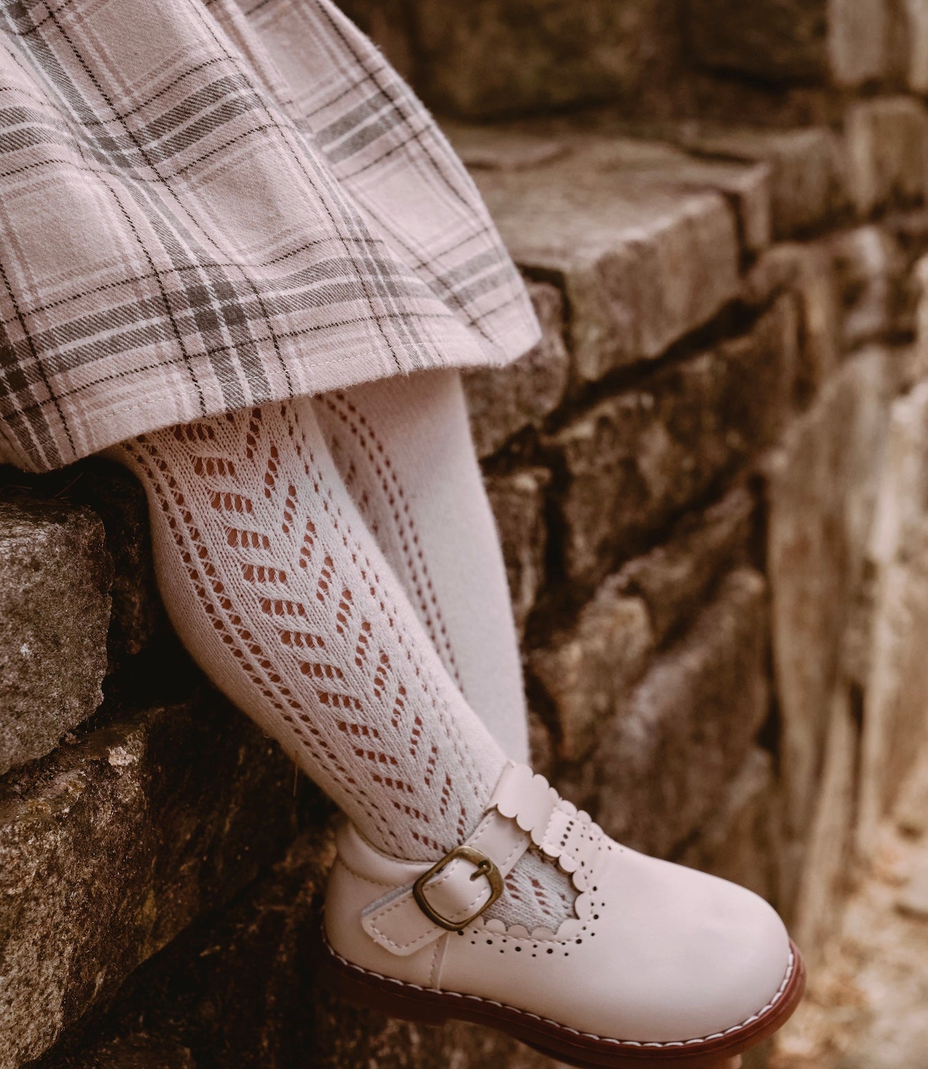 A versatile two-pack of pointelle tights in taupe and white, offering gentle warmth and a refined finish to any outfit.