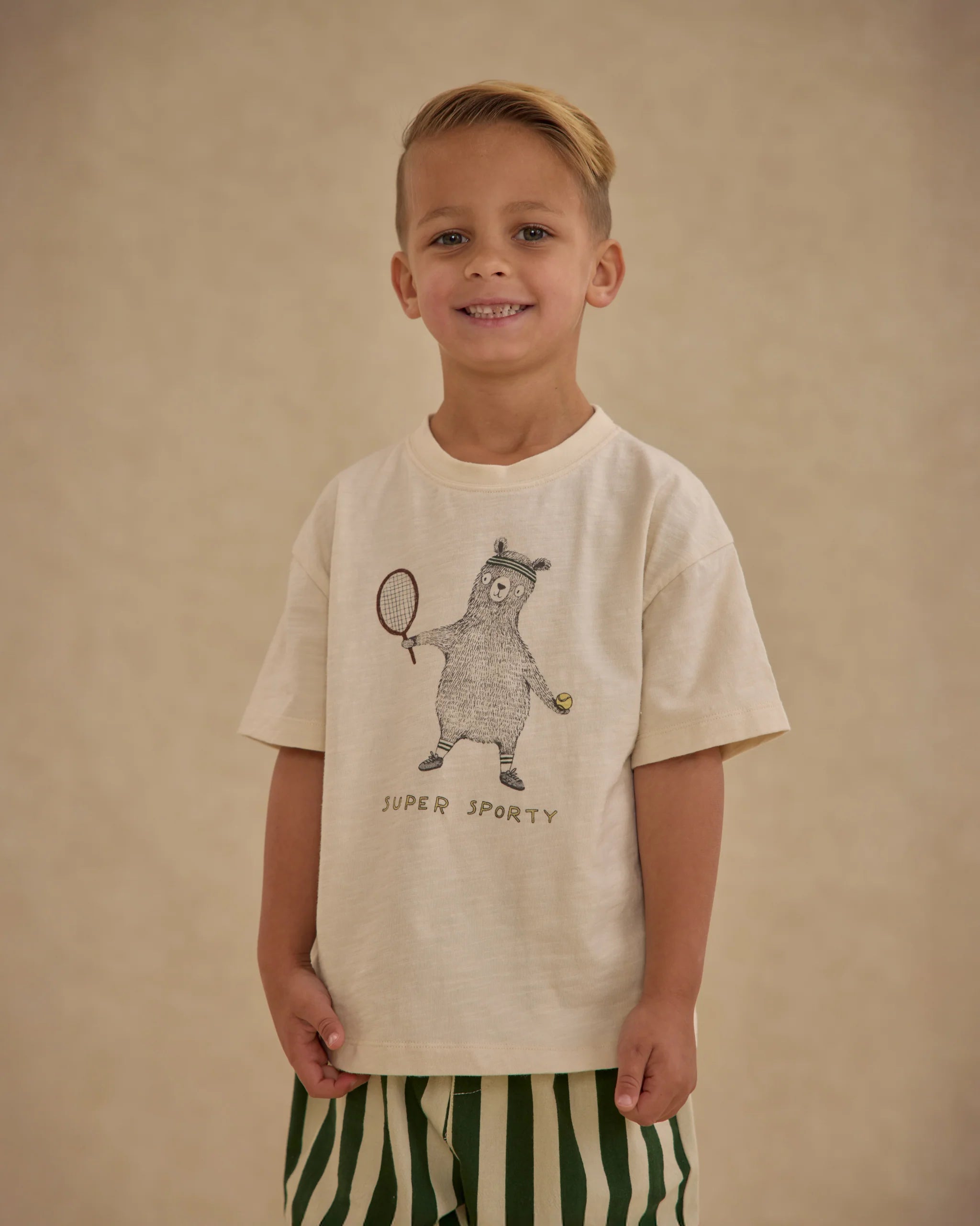 Relaxed-fit tee crafted from our soft cotton jersey. Shoulder snaps included on sizes 0-3M - 18-24M for easy changes.