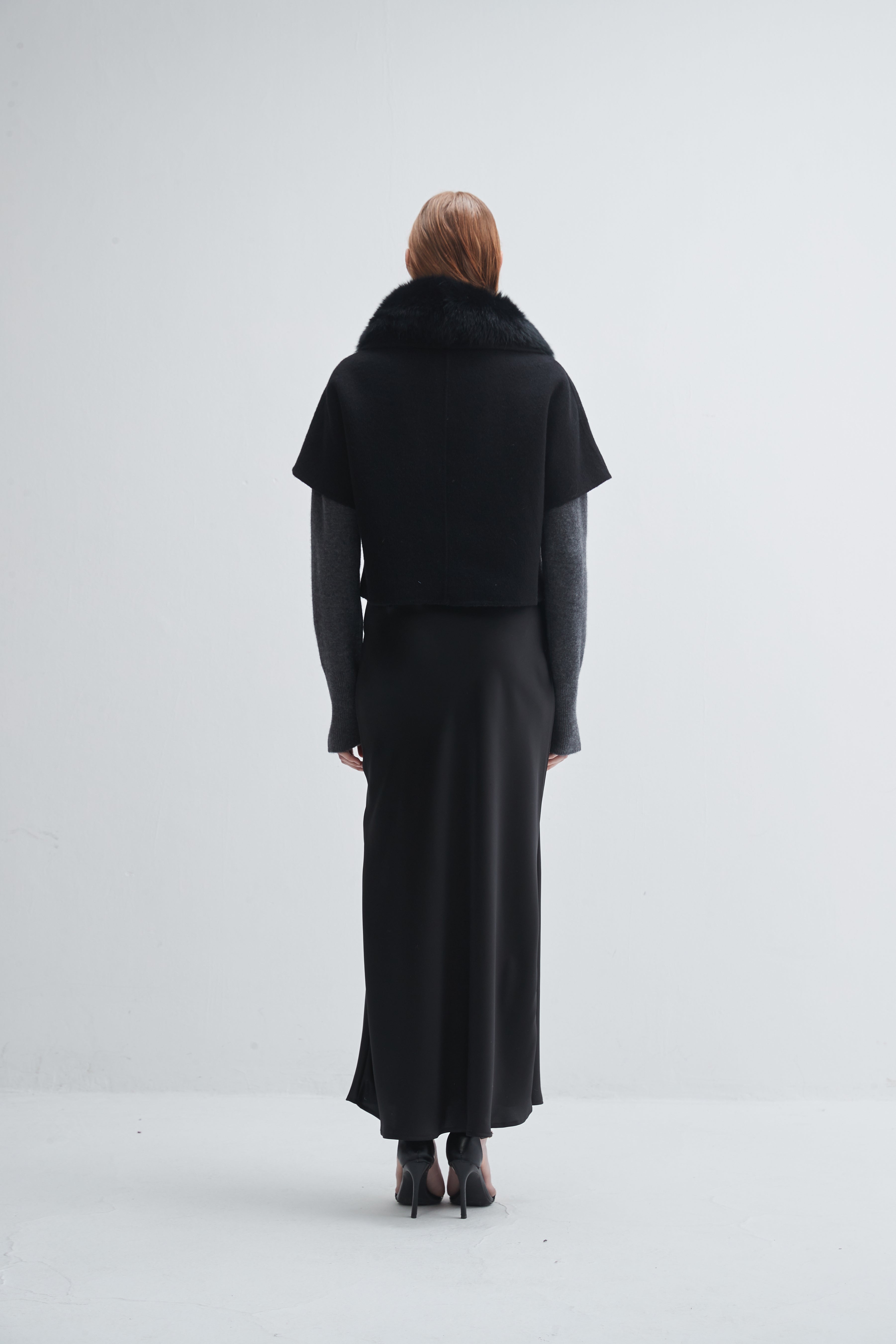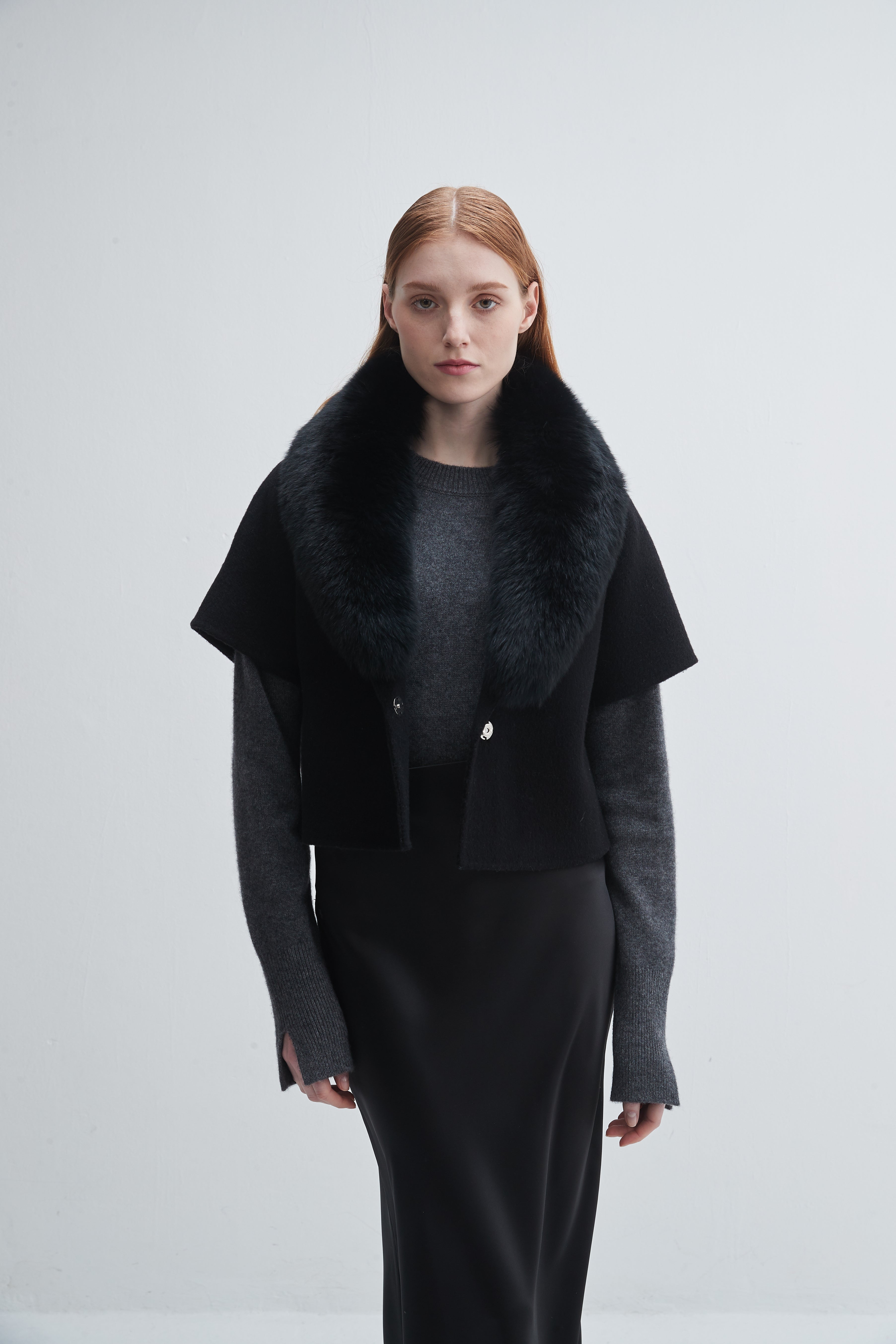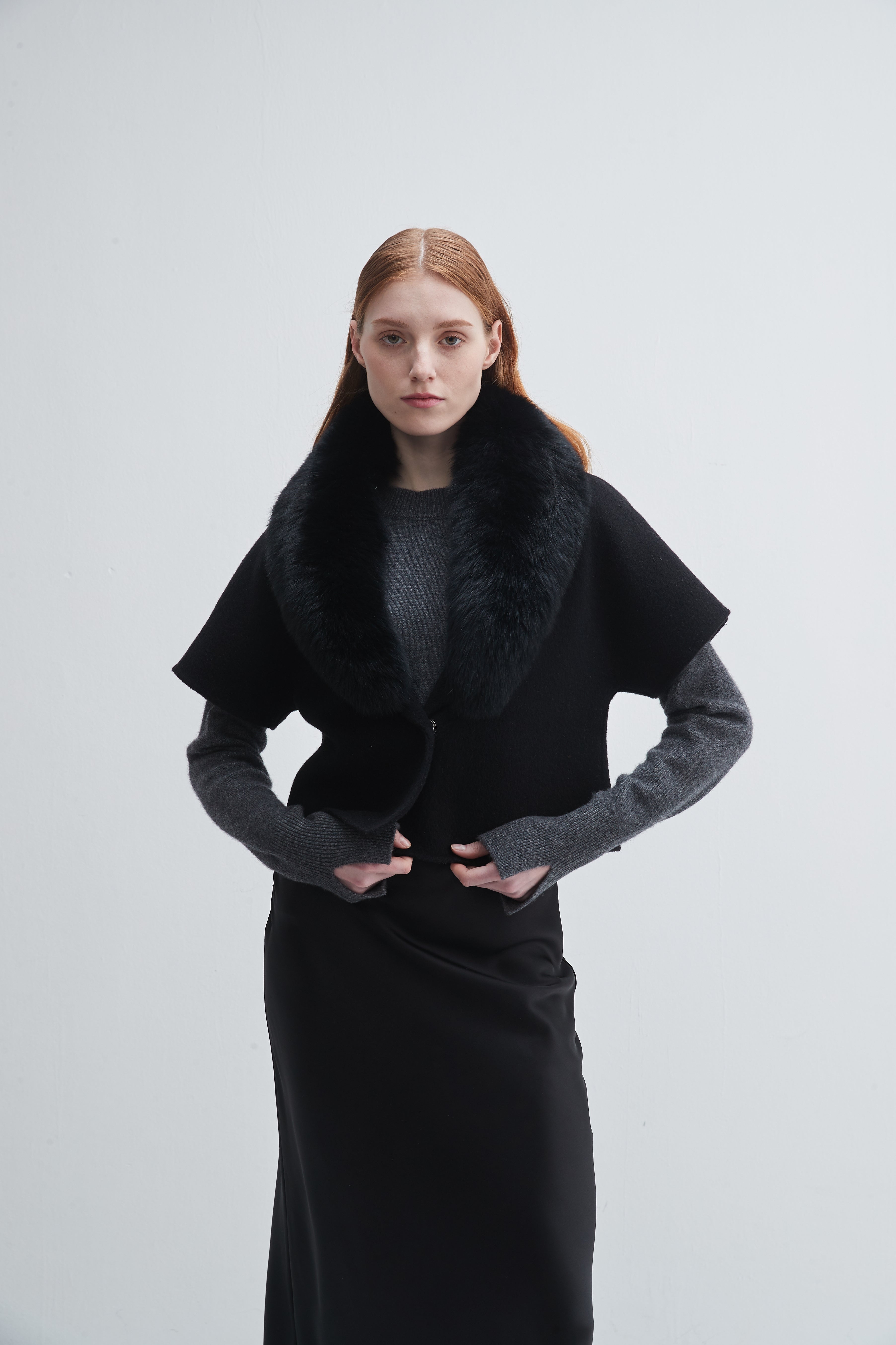 Short Sleeve Jacket With Fur Collar Black