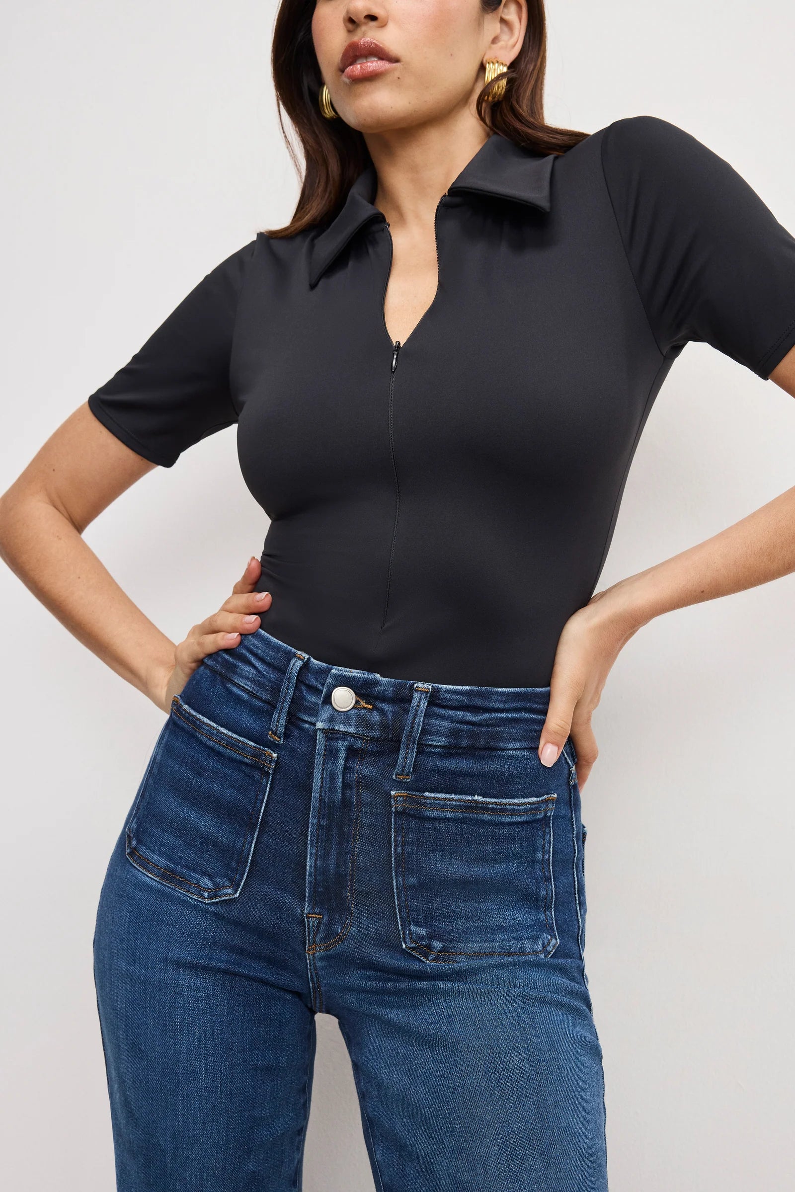 The ultimate waist-cinching style. A form-hugging fit with wide legs, a floor-skimming silhouette and a flattering high-rise waist for a defined hourglass shape. Made from our super-stretchy SoftTech Denim, aka the world's softest, lightest jeans ever.