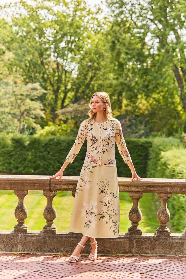 This linen skirt is an effortless warm-weather staple with a feminine, polished feel. Designed in a soft floral print, it features a clean, streamlined silhouette that falls beautifully and moves with ease. The lightweight linen fabrication keeps it breathable and comfortable, making it perfect for all-day wear. Pair it with the Reid Vest for a tailored, coordinated look, or layer on the Cindy Cardigan for an easy, pulled-together outfit that transitions seamlessly from day to night.
