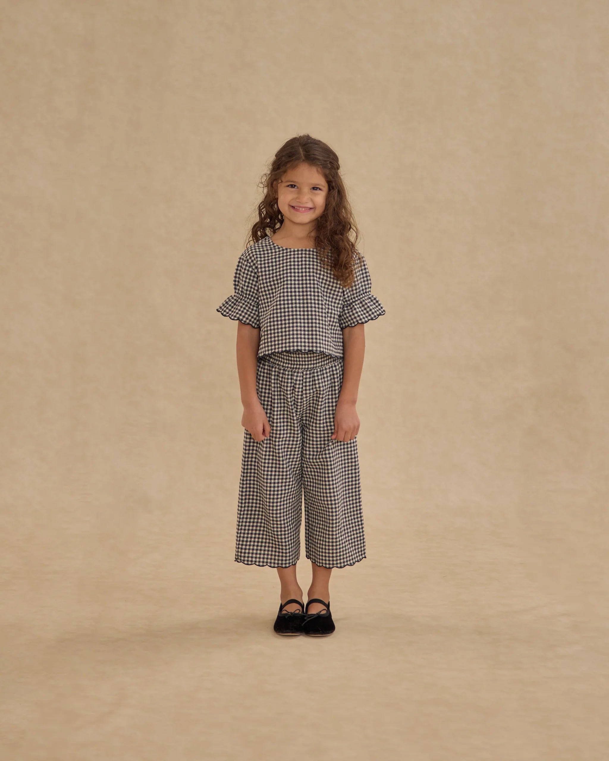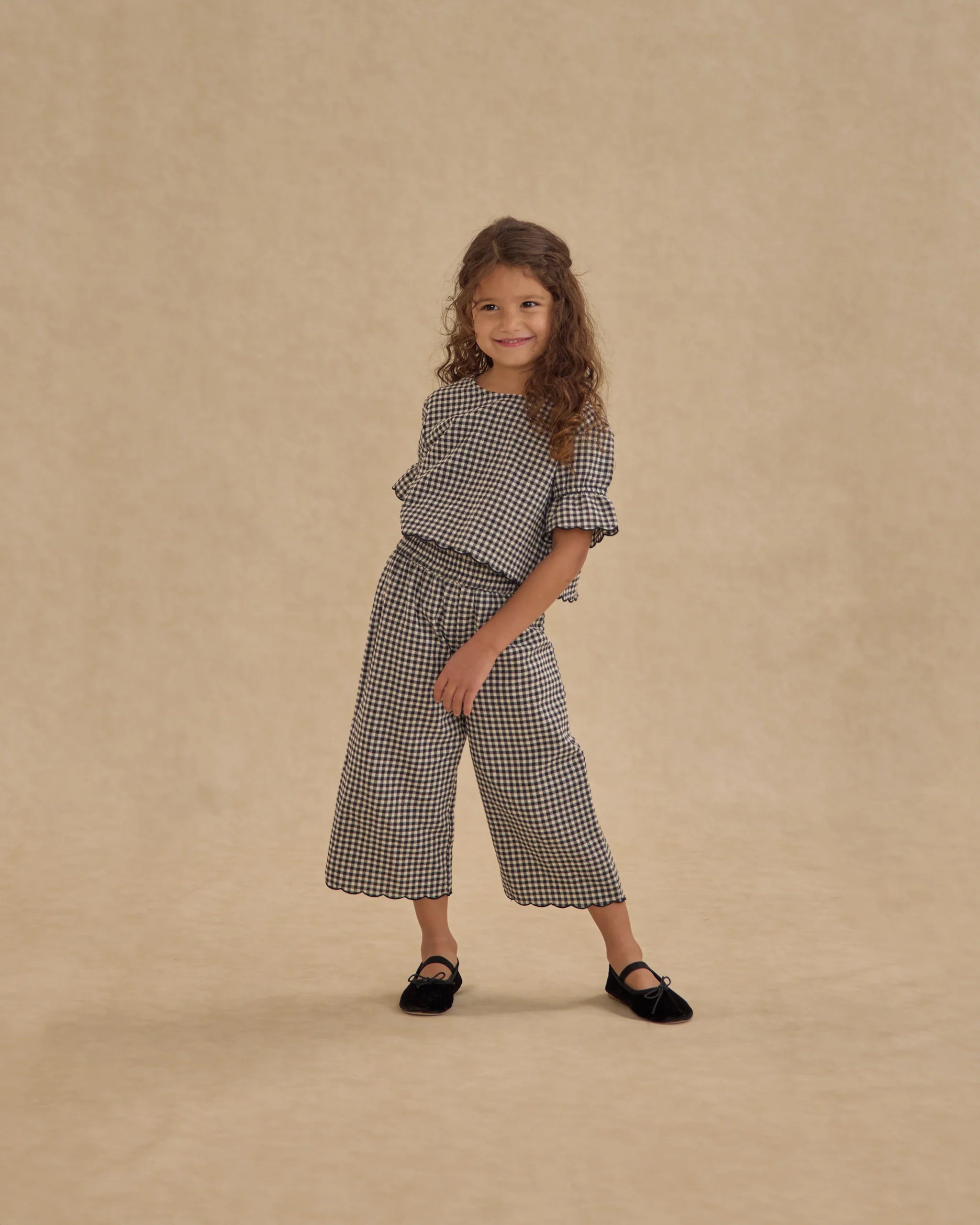 Clean lines, scalloped hem, and relaxed comfort—these wide-leg pants feature an elastic waistband for a perfect, pull-on fit.